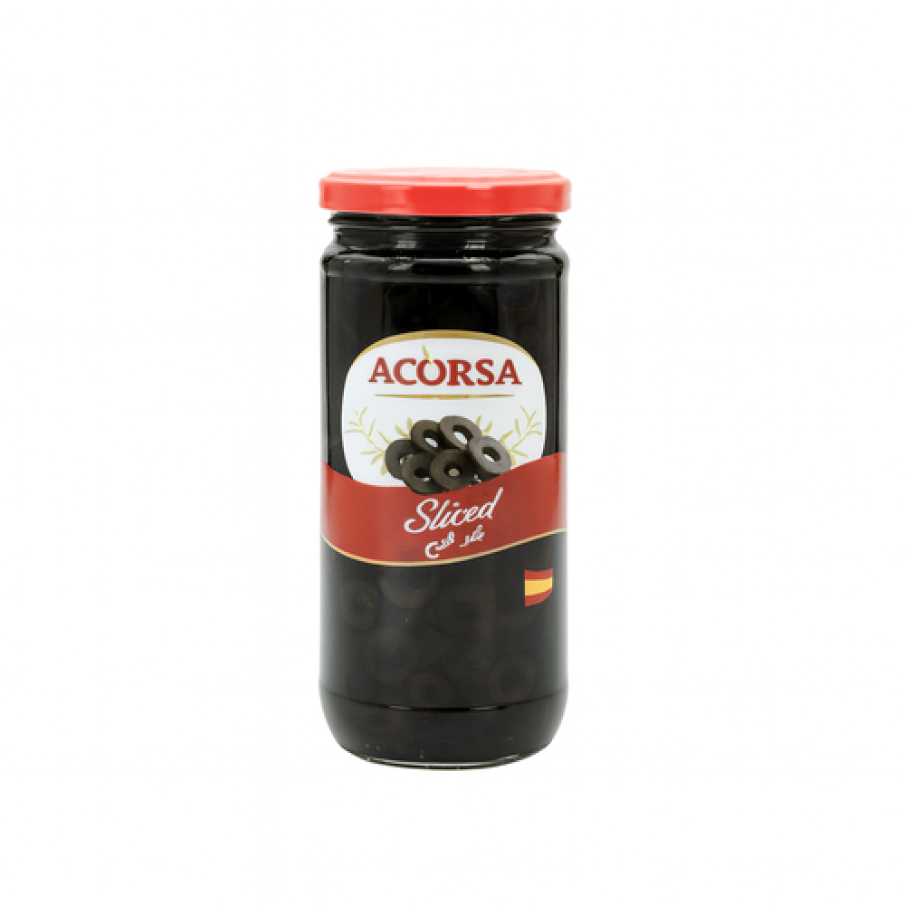 🫒 زيتون أسود شرائح أكورسا 470مل – الطعم الإسباني الفاخر بحجم عائلي