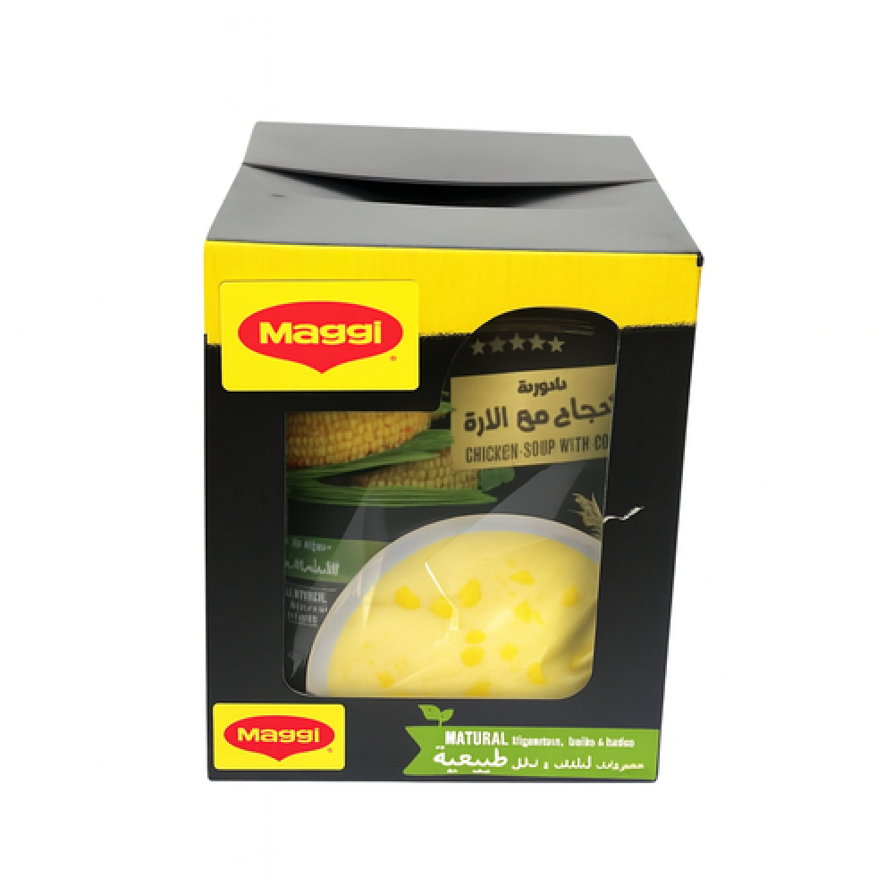 شوربة ماجي الدجاج مع الذرة تمنحك مزيجًا مثاليًا من الطعم الشهي للدجاج مع الحلاوة الطبيعية لحبات الذرة الطرية، لتقدّم لك شوربة لذيذة وغنية بالقوام. مثالية كمقبلات دافئة على مائدتك أو كوجبة خفيفة في أي وقت من اليوم.