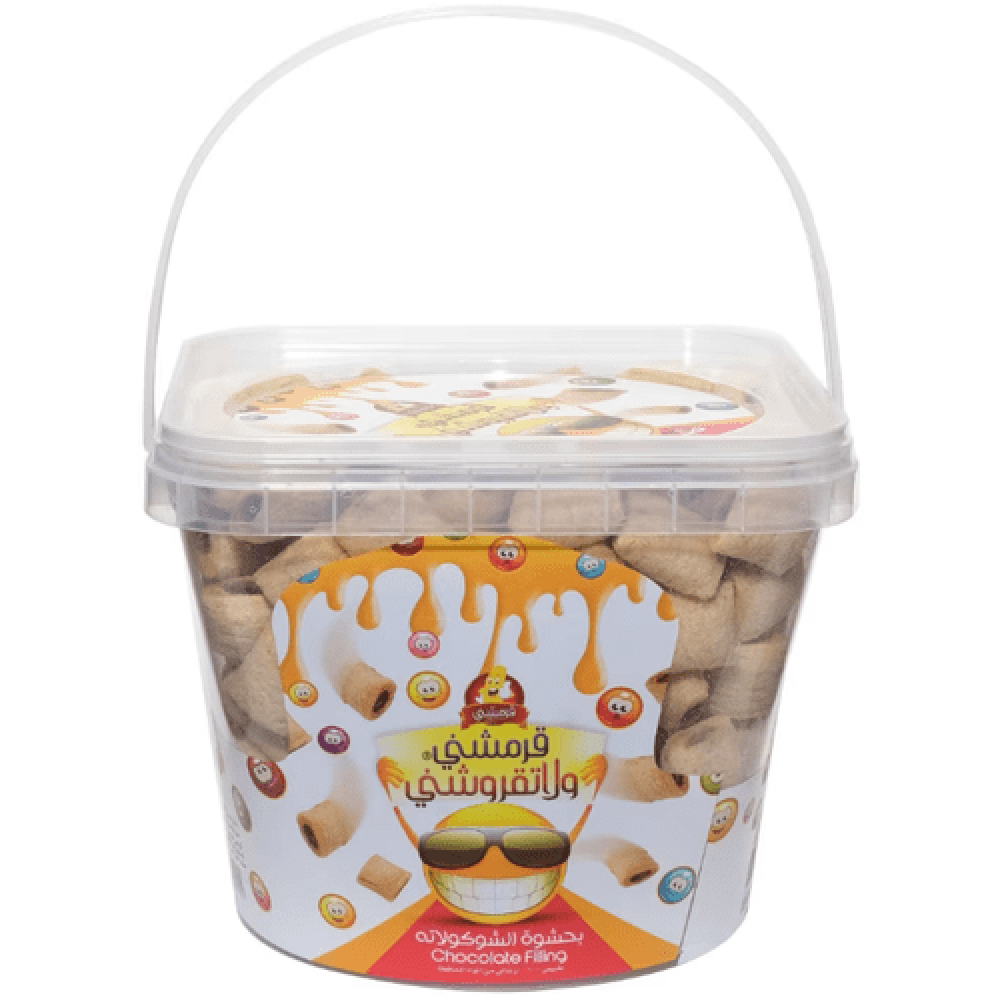 قراميش شوكولاتة محشية هو الاختيار المثالي لعشاق الحلويات الخفيفة والمقرمشة. يجمع بين القوام المقرمش والحشوة الغنية بالشوكولاتة ليمنحك تجربة فريدة من الطعم. مناسب للتقديم في المناسبات أو كوجبة خفيفة في أي وقت من اليوم.