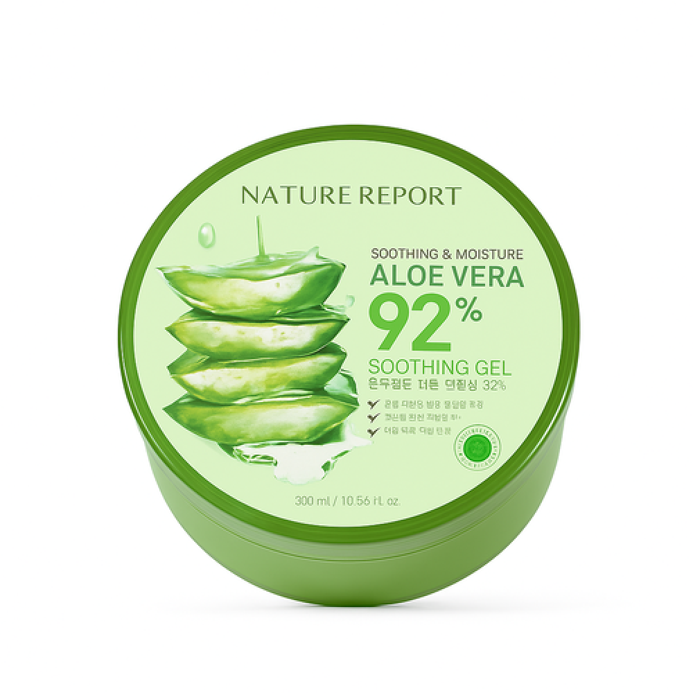 يحتوي جل نيتشر ريبورت على مكونات طبيعية بنسبة 100٪ مثل الصبار والجلسرين ومستخلصات الشاي الأخضر. يتم استخدام هذه المكونات الطبيعية لتهدئة البشرة وترطيبها بشكل فعال.