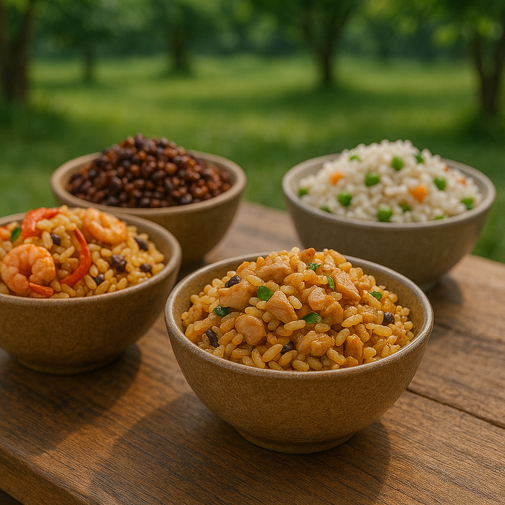 - الأنواع المتوفرة: أرز بسمتي، أرز ياسمين، أرز عائلي، وأرز عضوي.