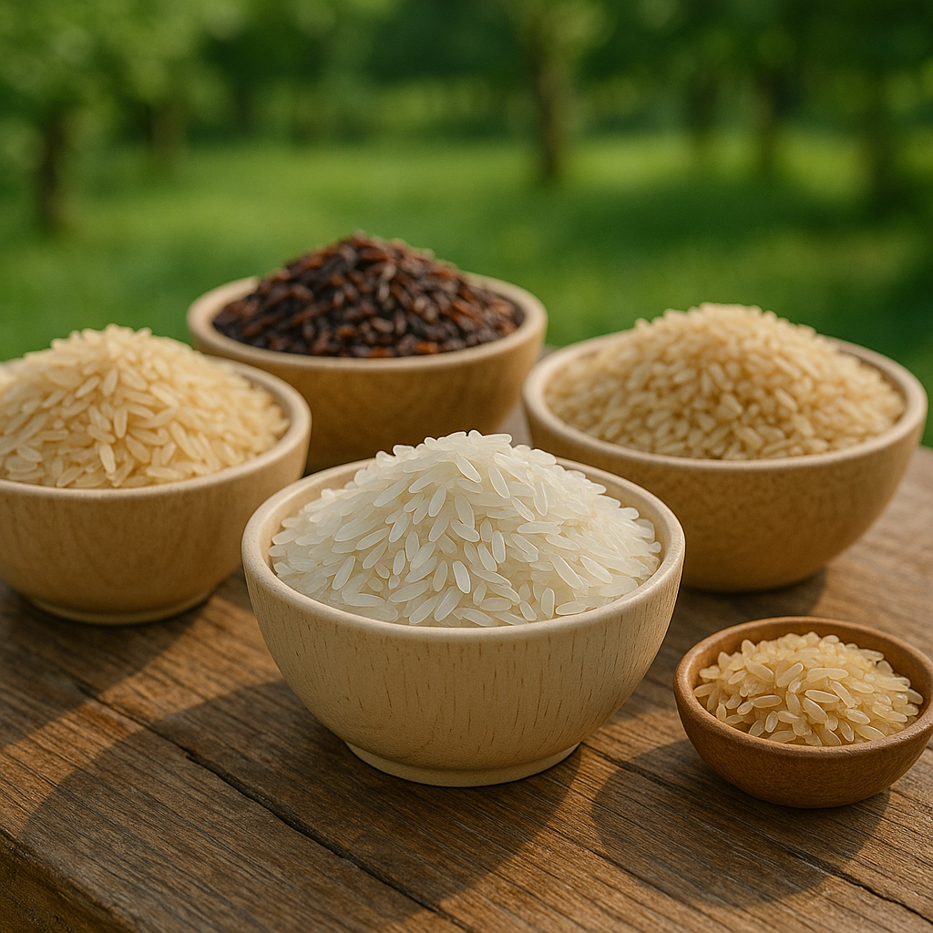 - الأنواع المتوفرة: أرز بسمتي، أرز ياسمين، أرز قصير الحبة، وأرز عضوي.