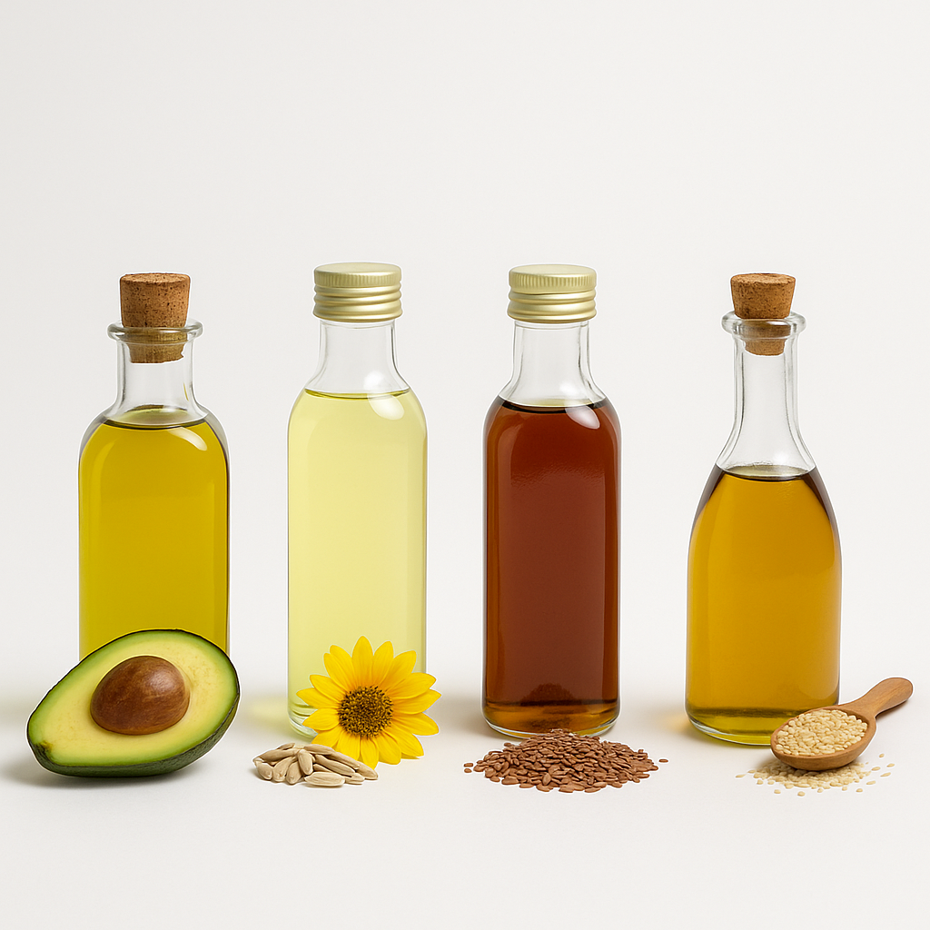 زيت الزيتون، زيت الكتان، زيت الأفوكادو، وزيت السمسم تُعد من أفضل الزيوت لصحة القلب والمناعة.