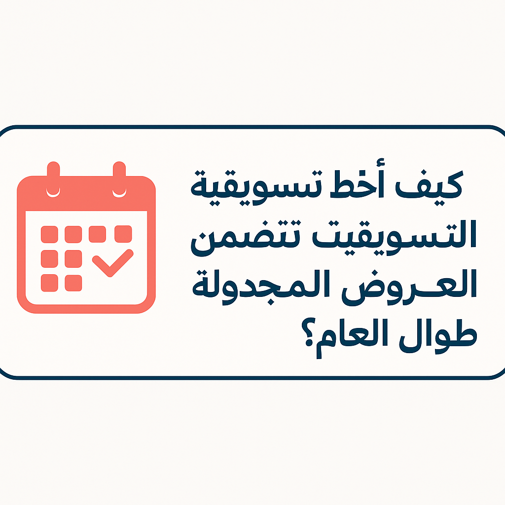 الجدول الزمني جزء أساسي من الخطة التسويقية السنوية، فهو يساعد على توزيع العروض على مدار السنة لتغطي المواسم الكبرى مثل رمضان، العيد، اليوم الوطني، وبداية العام الدراسي. هذه الاستراتيجية تضمن استمرارية النشاط التسويقي دون انقطاع وتحقيق توازن في المبيعات طوال العام.