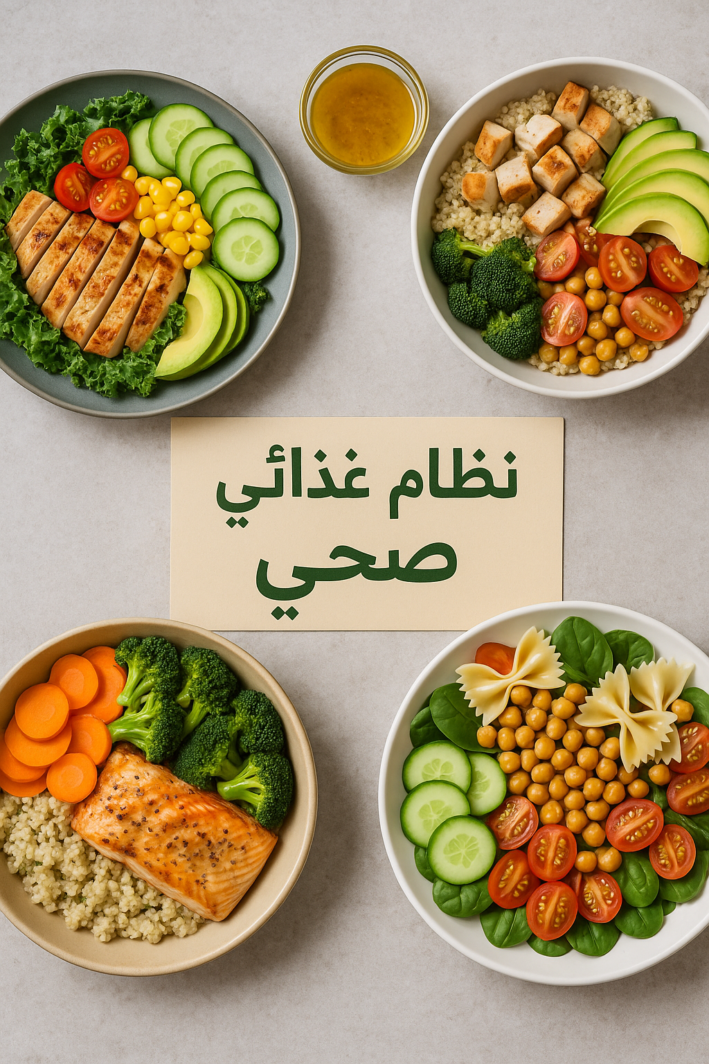 النظام الغذائي المتوازن يقوم على تناول مجموعة متنوعة من الأطعمة بكميات مناسبة لتزويد الجسم بالعناصر الغذائية الأساسية.