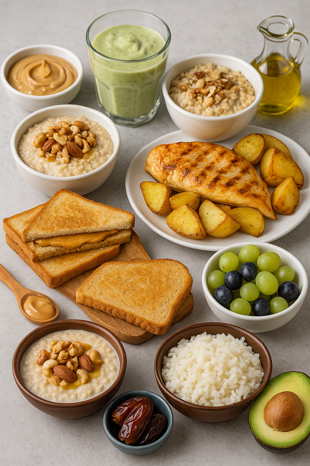 أفضل الوصفات تشمل: التمر بالحليب، الشوفان بالمكسرات، السموثي عالي السعرات، والأرز بالدجاج مع الصوص.