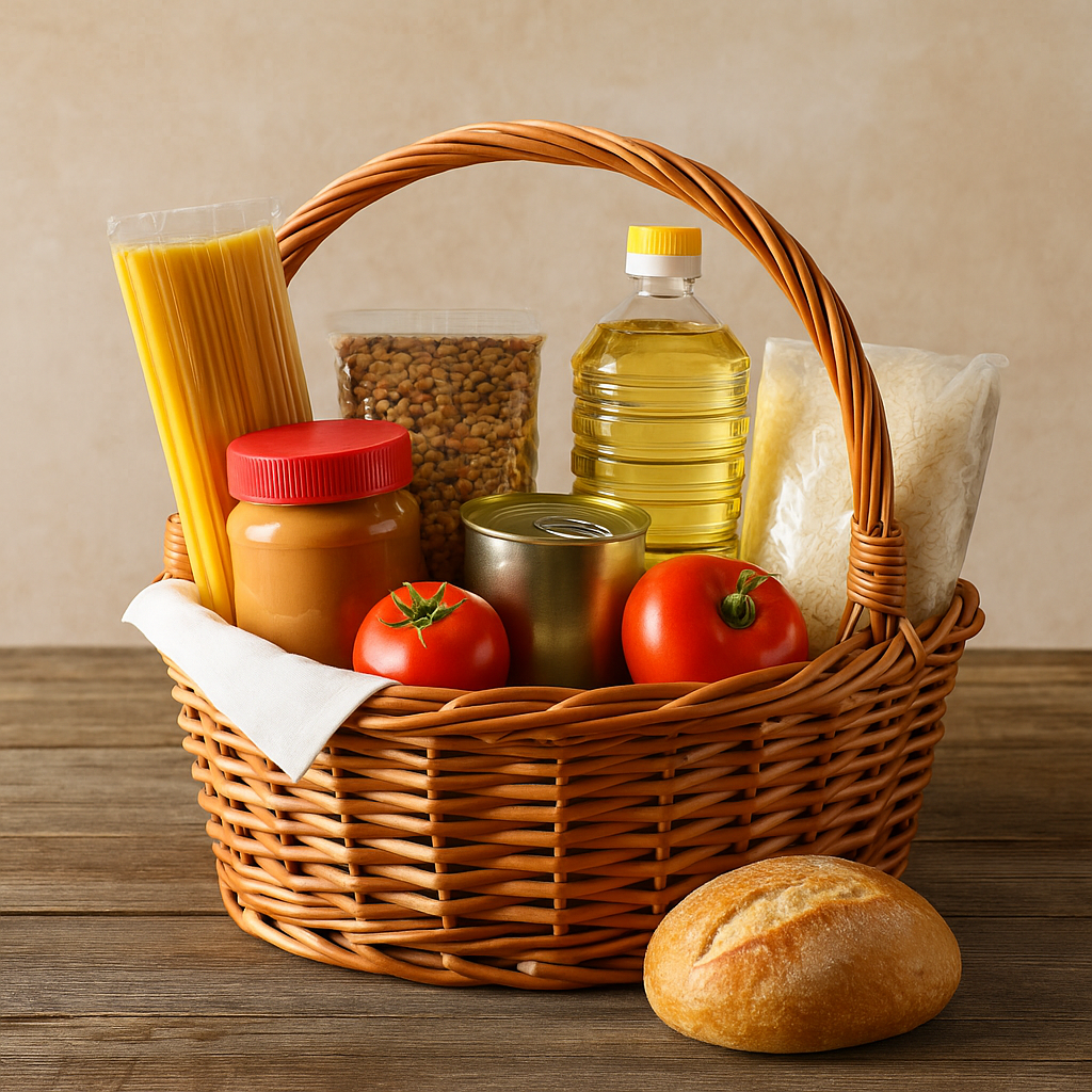 - سلة متوسطة: إضافة بقوليات، شاي، معلبات.
