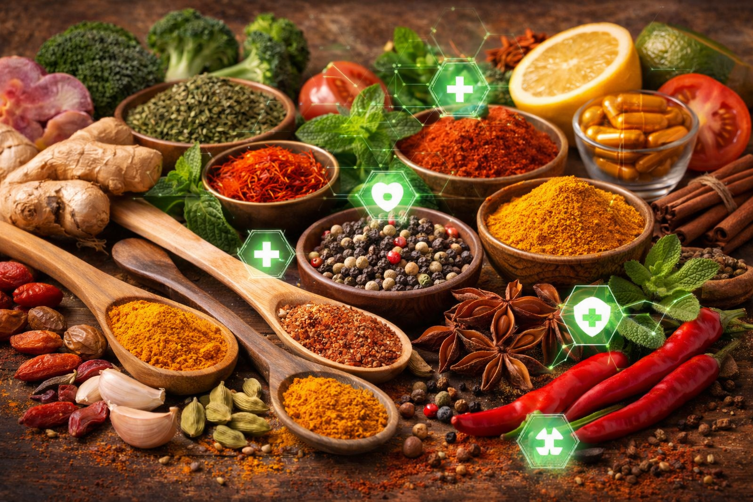 البهارات هنا لا تُغني عن الغذاء المتوازن، لكنها تدعمه بقوة.